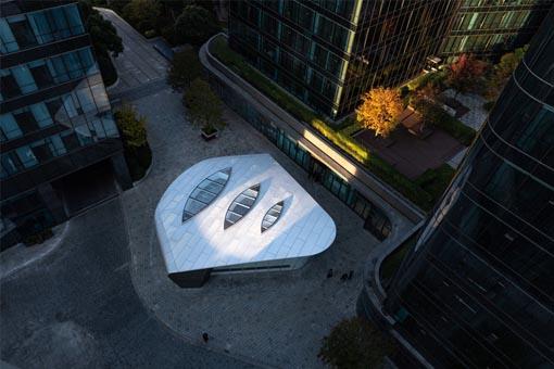 金臣·亦飛鳴美術(shù)館在虹橋商務(wù)區(qū)管委會(huì)及閔行區(qū)政府的支持下應(yīng)運(yùn)而生。美術(shù)館以巨量的藝術(shù)空間亮相,不僅將陸續(xù)推出當(dāng)代藝術(shù)家的國(guó)際作品展,還將開辟藝術(shù)畫廊、藝術(shù)講壇、藝術(shù)培訓(xùn)與交流等公眾活動(dòng)和公共服務(wù)空間,打造真正的“無(wú)墻美術(shù)館”,讓世界各地的藝術(shù)家共襄盛舉,銘刻時(shí)代印記,建立藝術(shù)高地,讓藝術(shù)充分融入生活、連接世界,并邀請(qǐng)更多市民大眾走進(jìn)藝術(shù)圣殿,共享文明成果,為虹橋商務(wù)區(qū)的會(huì)商旅文體發(fā)展添磚加瓦。在城市主導(dǎo)的規(guī)模化建設(shè)商務(wù)區(qū)中,上海金臣·亦飛鳴美術(shù)館的設(shè)計(jì)與建造也可以算是一種重生。建筑尺度雖然不大,但表達(dá)了一種對(duì)規(guī)整城市的“叛逆”,反抗傳統(tǒng)商業(yè)建筑中藝術(shù)空間的表達(dá)方式,從概念到建造展現(xiàn)出“非常規(guī)”的設(shè)計(jì)理念,講述“建筑”的藝術(shù)故事。