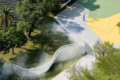 項(xiàng)目坐落于廣州市天河區(qū),原址是一所舊一個(gè)老小學(xué),周邊是老舊村民住宅和公寓,隨著城市現(xiàn)代化的發(fā)展,學(xué)校已經(jīng)搬走了很多年,附近社區(qū)的老市集和傳統(tǒng)市井文化也逐漸消失。舊小學(xué)建筑目前的持有者是廣州未來(lái)社,為了讓城市發(fā)展和歷史文脈相結(jié)合,在這一地區(qū)開(kāi)展新城市市集ifland如果島 ,激活老舊社區(qū),客戶委托ROOI諾億設(shè)計(jì)進(jìn)行臨時(shí)改造,并建立一個(gè)標(biāo)志性的Pavilion為中心來(lái)承載各類(lèi)集會(huì)、演講等文化活動(dòng)。