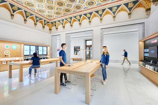 蘋果在歐洲最大的門店開設(shè)在羅馬科爾索大道(Via del Corso)上,這是意大利首都最具活力的街道之一。蘋果科爾索大道店位于馬里尼奧利宮(Palazzo Marignoli)內(nèi),讓這座歷史悠久的19世紀建筑煥發(fā)新生。馬里尼奧利宮位于16世紀一座修道院(delleConvertite)的遺址上,由著名建筑師Salvatore Bianchi于1870年為Filippo Marignoli設(shè)計。19世紀,建筑師Giulio Podesti進行了二次設(shè)計,增加了我們?nèi)缃窨吹降闹髁⒚妗6鴱?890年到1955年,它則以affè Aragno的所在地而聞名,作為來自鄰近議會的作家、記者和政治人物的時尚會面場所。